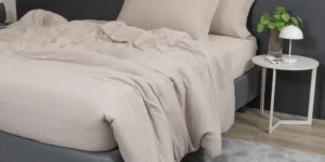 Per garantire la massima praticità e un letto sempre ordinato, la combinazione ideale è optare per il lenzuolo sotto con angoli in jersey di cotone e un copripiumino no stiro. In questo modo l’allestimento della camera è rapida e senza necessità di stiratura.