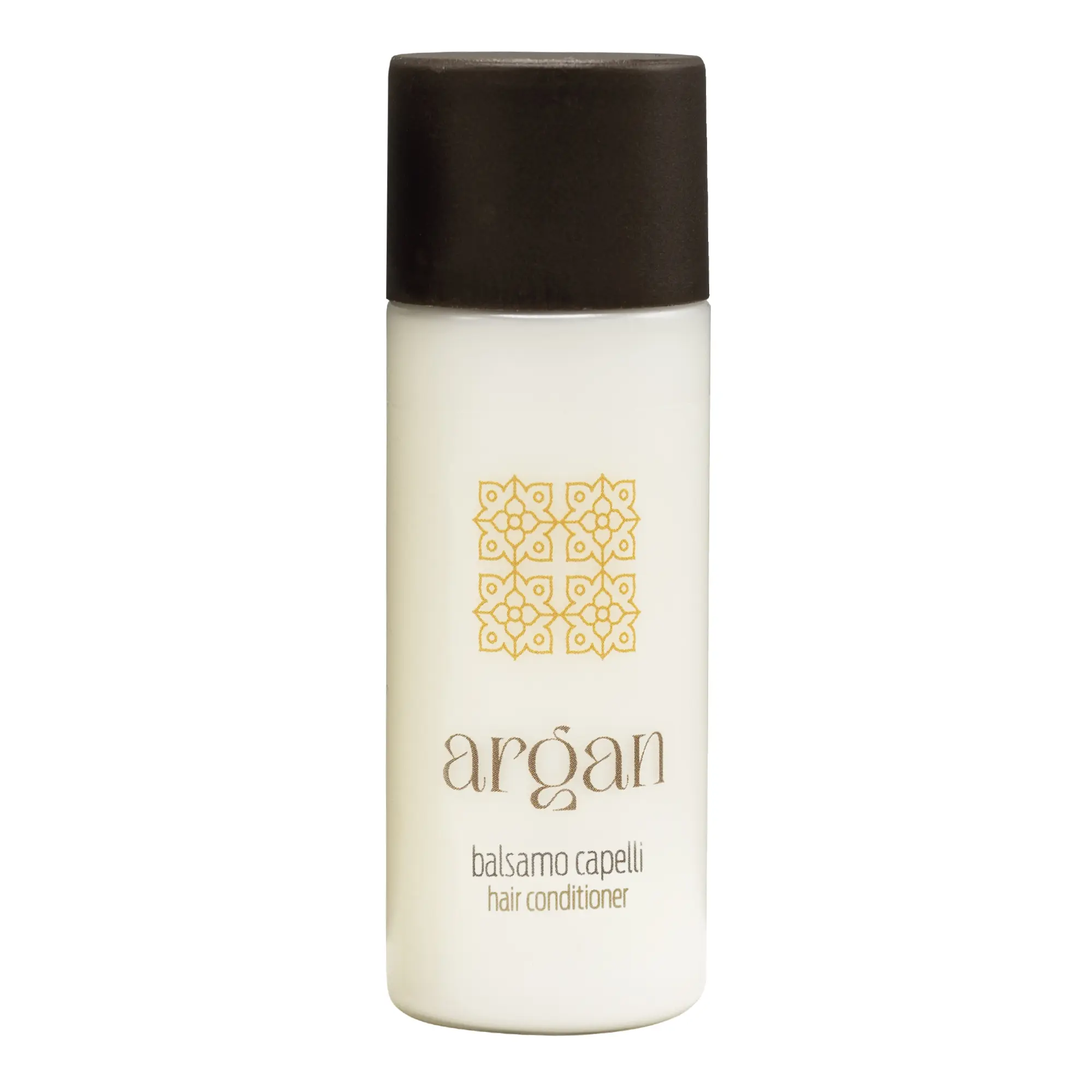La linea cortesia Argan racchiude prodotti caratterizzati da una fragranza raffinata ed esotica, con un tocco di fascino e mistero che rimanda a luoghi lontani. Realizzata con olio di argan biologico, conosciuto per le proprietà antiossidanti, emollienti e idratanti, è un vero e proprio nutrimento e benessere per la pelle. La fragranza racchiude la freschezza del bergamotto e del mandarino con la dolcezza del mughetto, peonia e rosa. Le note di fondo avvolgenti di legno di sandalo, ambra e muschio conferiscono un tocco di mistero e fascino alla profumazione.