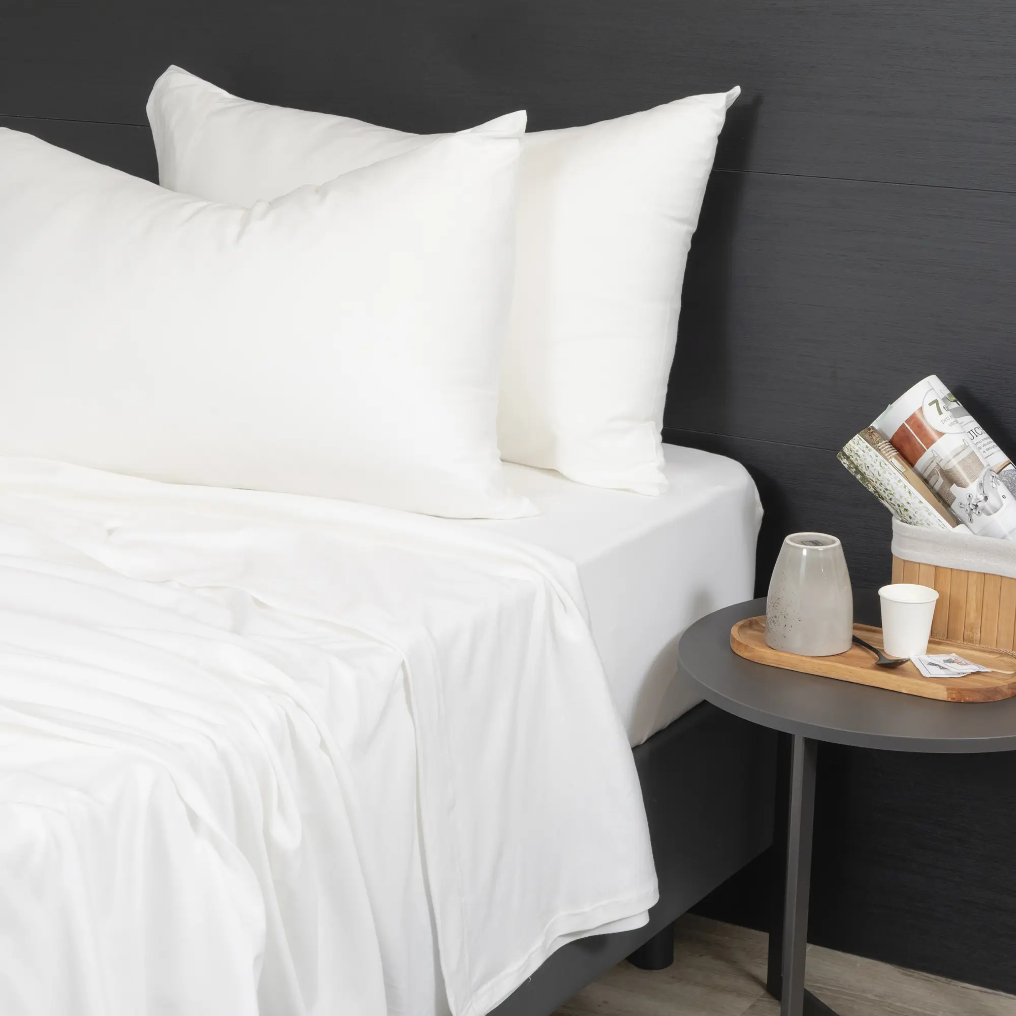 Completo letto in jersey di cotone pettinato, traspirante e pratico, non necessita di stiratura.